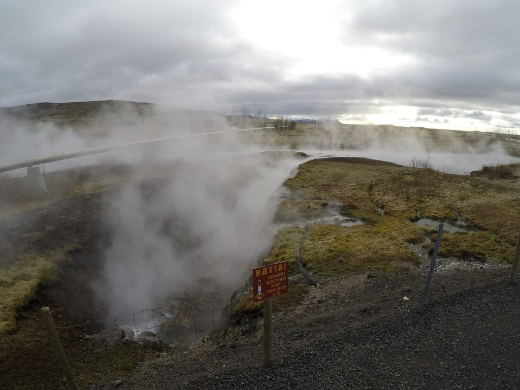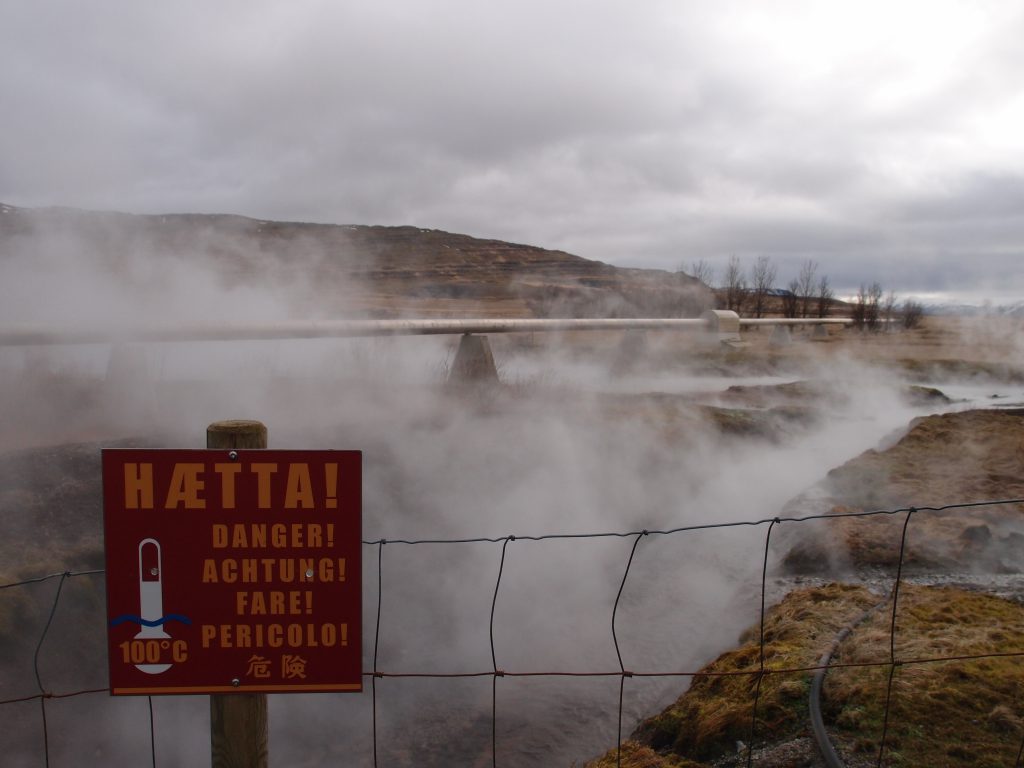 Hier sahen wir hier auch 100 Grad heißes Wasser aus vielen Quellen entspringen. Diese Quellen nutzen die Isländer zur Energiegewinnung und transportieren das Wasser in Rohren in bis zu 80 Kilometer entfernte Städte.