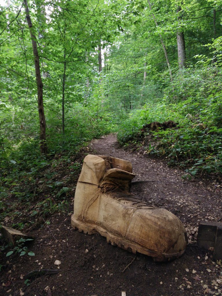 Den ca. 14km langen Wanderrundweg Dreifürstensteig fingen wir in Mössingen am Parkplatz des Naturschutzgebietes Olgahöhe an. Wir waren sofort froh, festes Schuhwerk und eine leichte Jacke dabei zu haben. Steile und rutschige Pfade führten uns am Buchbach...