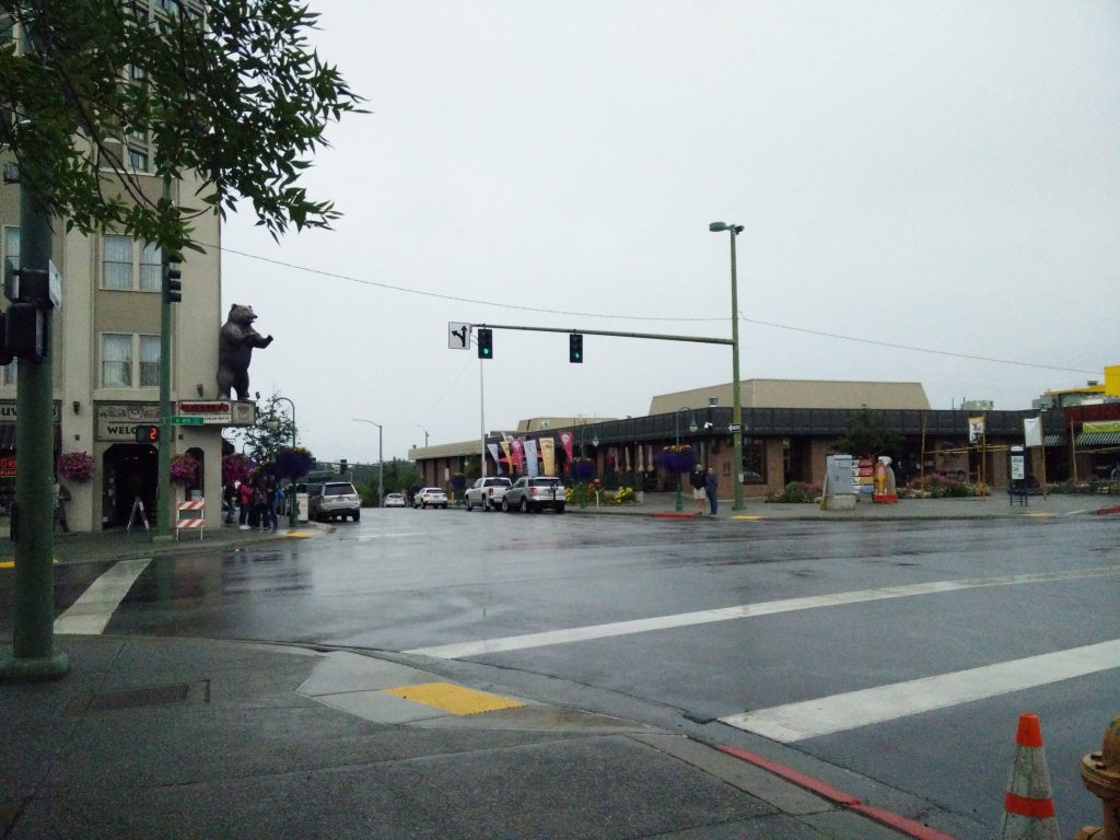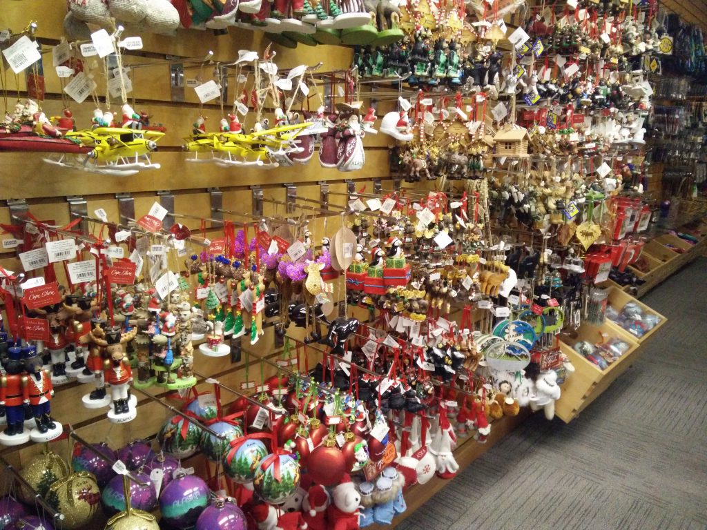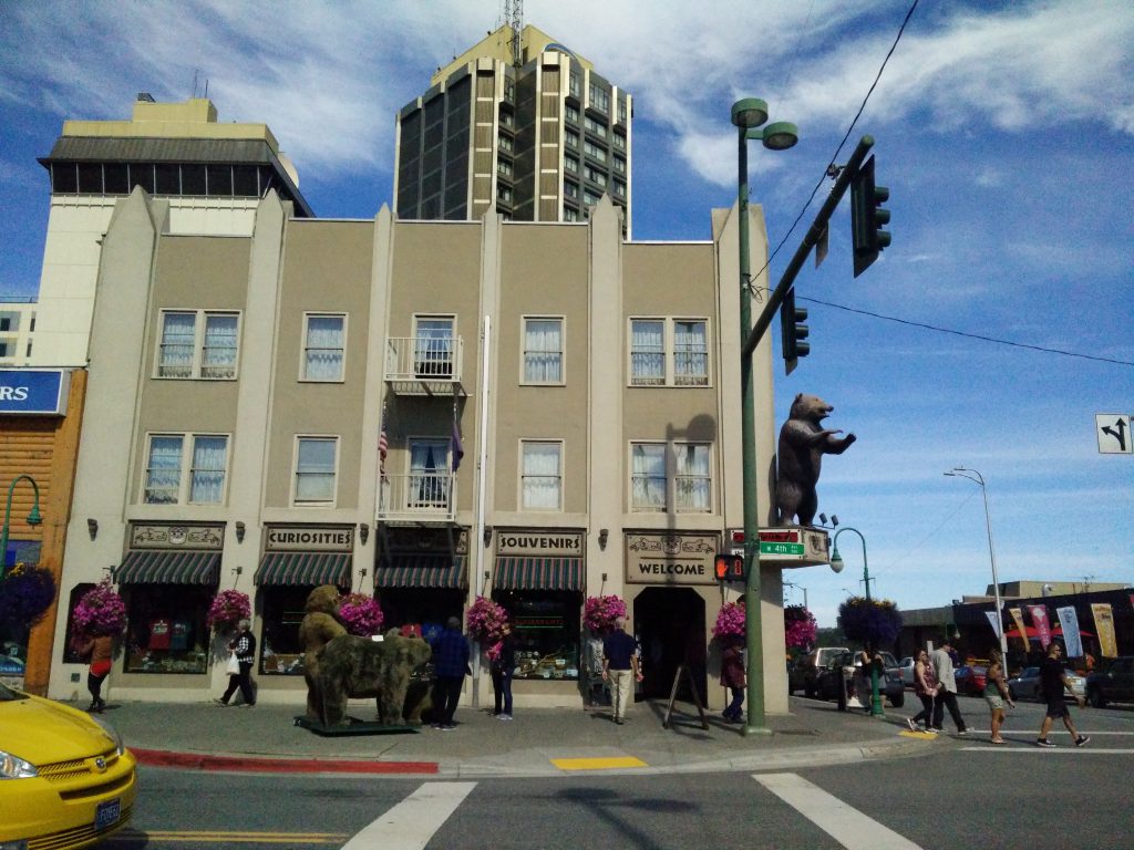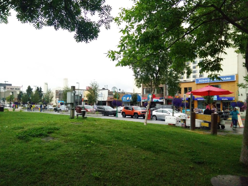 Downtown Anchorage ist recht überschaubar. Neben einer Vielzahl von Parks, Cafés und Restaurants findet man in jeder Straße Souvenirgeschäfte, die schon im August Weihnachtsschmuck anbieten.