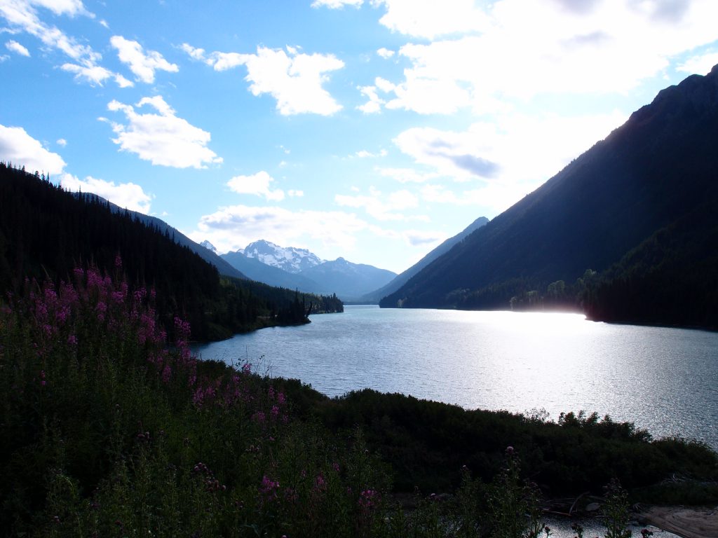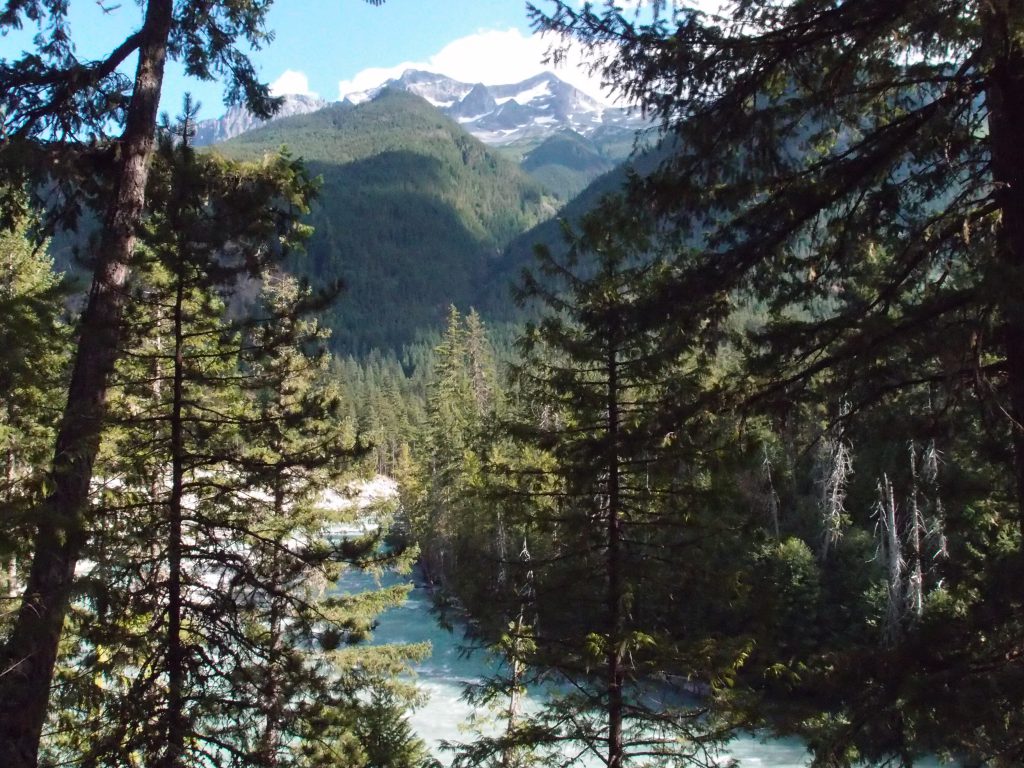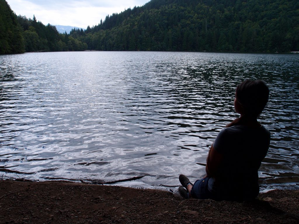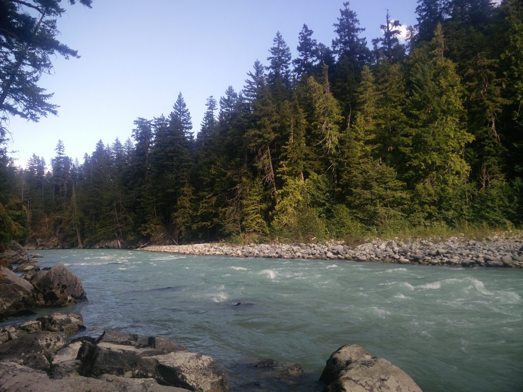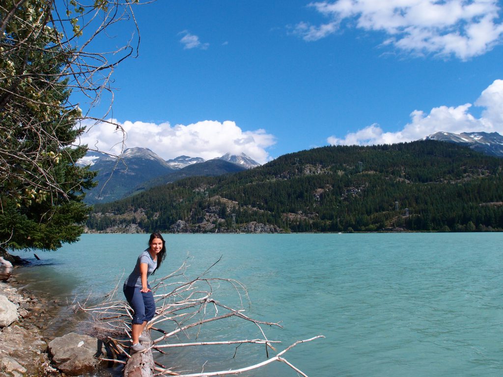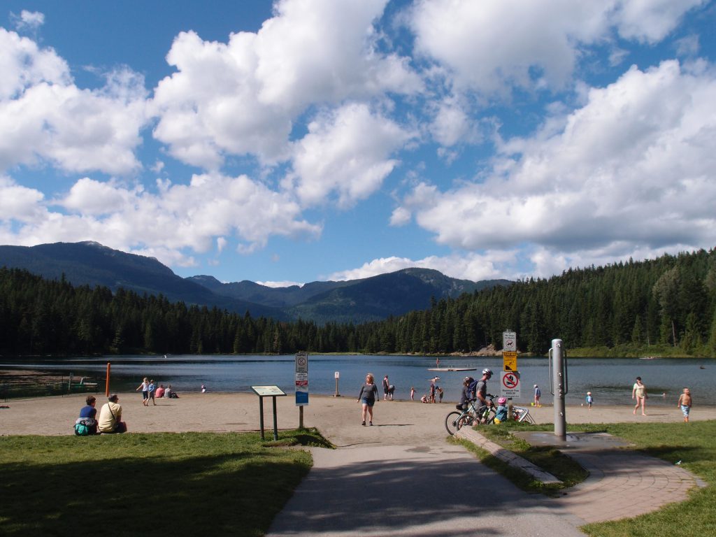 Wir machten uns auf den Weg nach Whisler und hielten unterwegs am Lost Lake. Um zum Fluss zu gelangen, musste man durch ein Waldstück laufen, dass von Campern wimmelte.