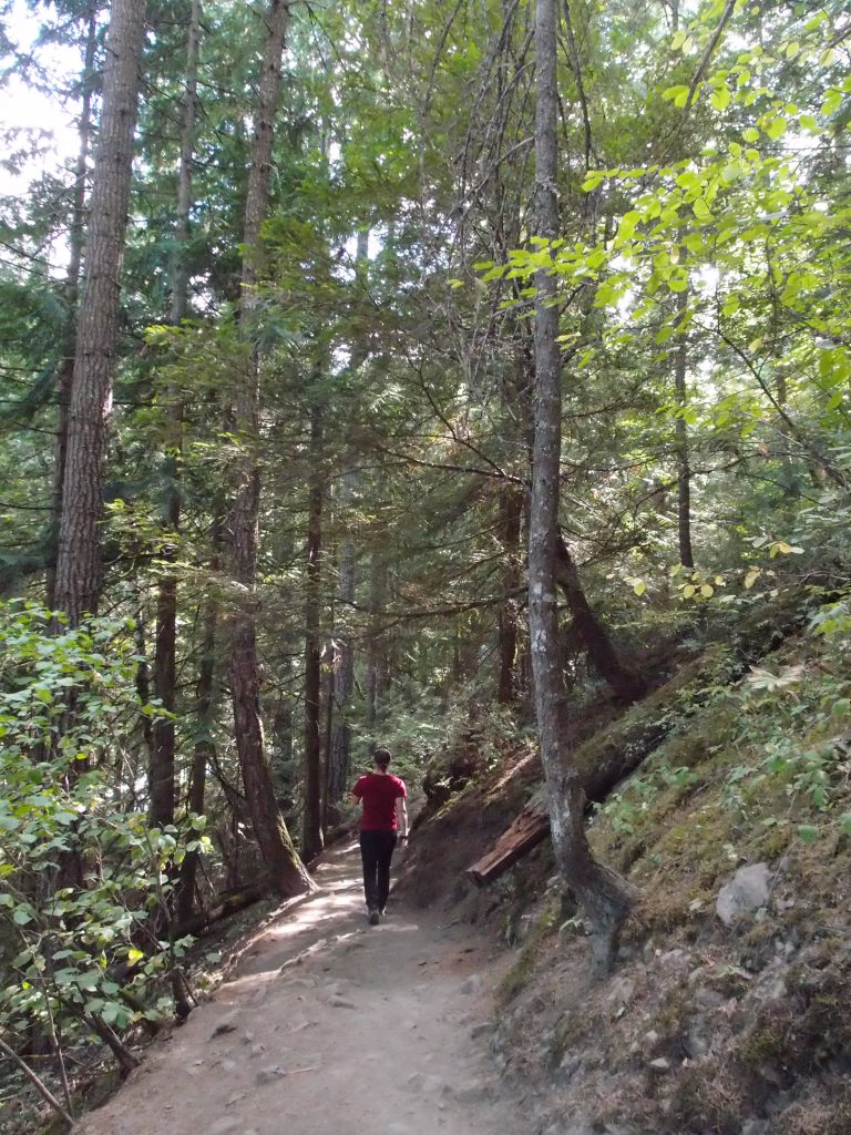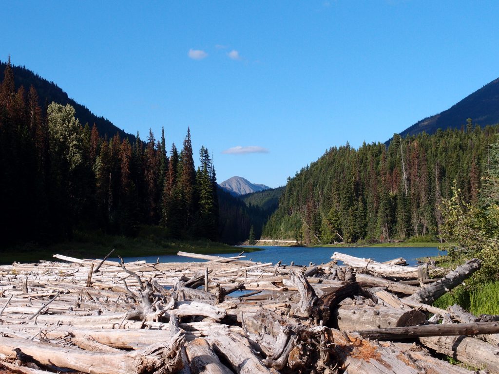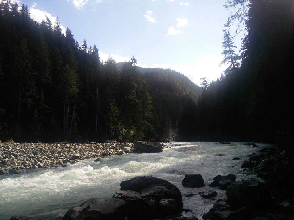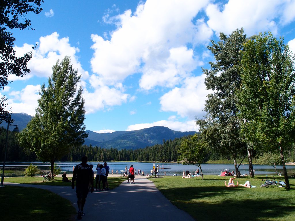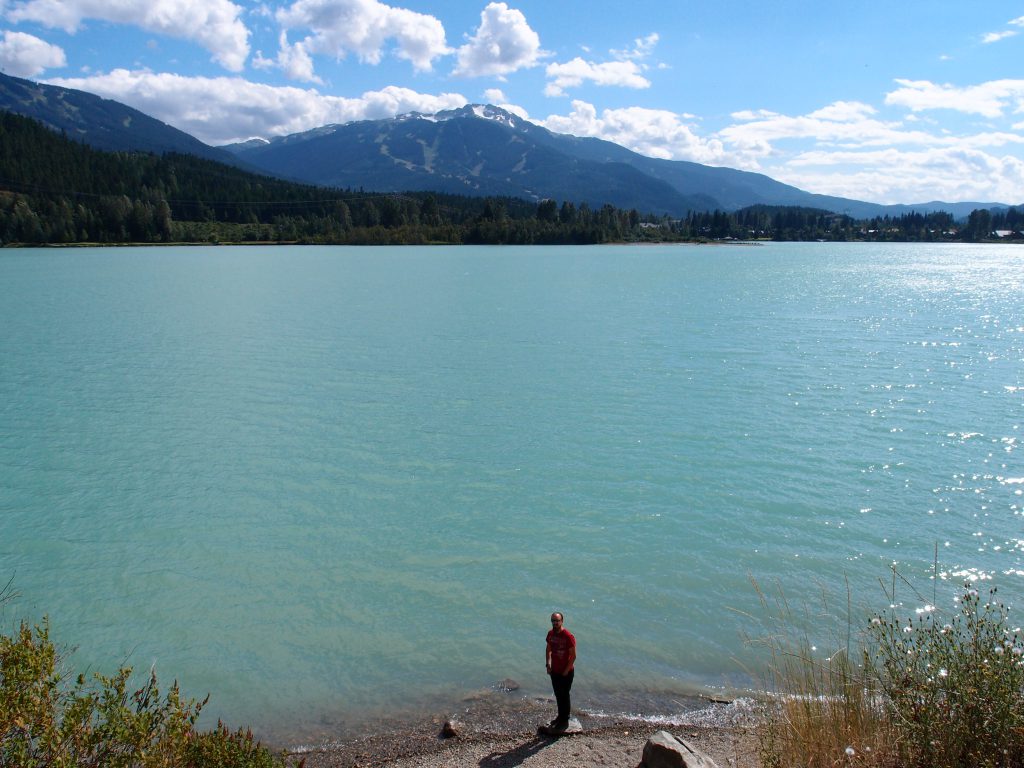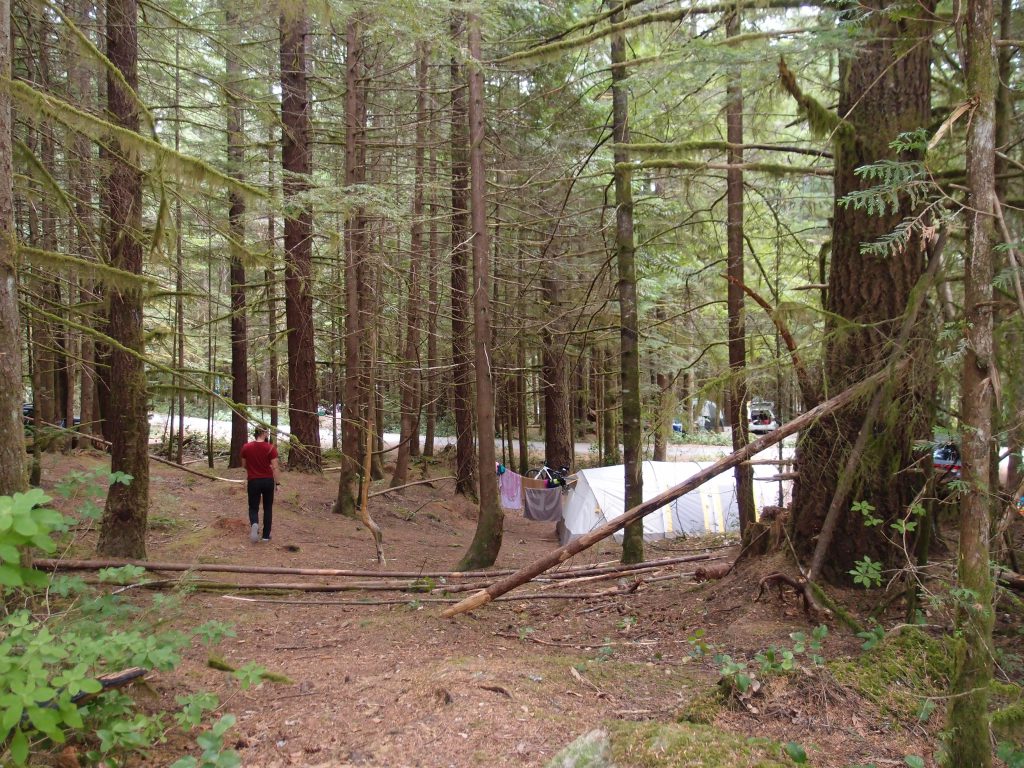 Wir machten uns auf den Weg nach Whisler und hielten unterwegs am Lost Lake. Um zum Fluss zu gelangen, musste man durch ein Waldstück laufen, dass von Campern wimmelte.