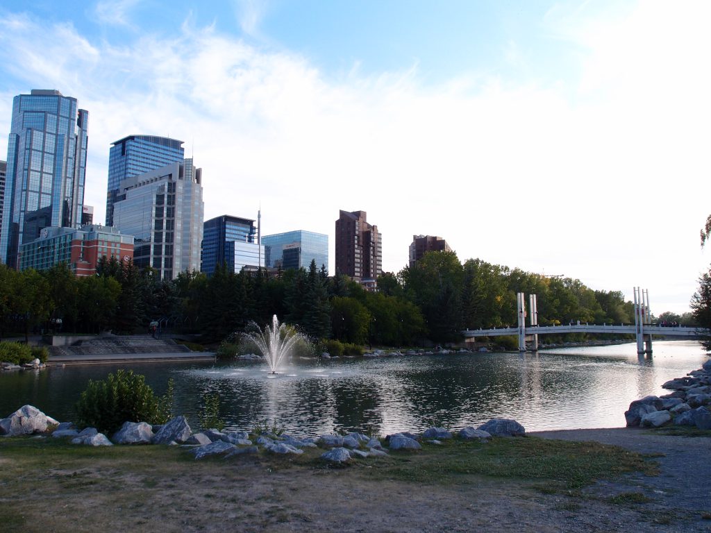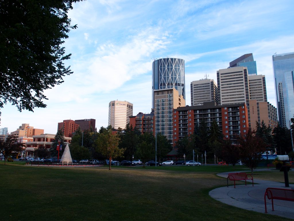 und fahren der immer flacher werdenden Landschaft entgegen. Die einzigen Hügel bilden in Calgary die Hochhäuser der Innenstadt.