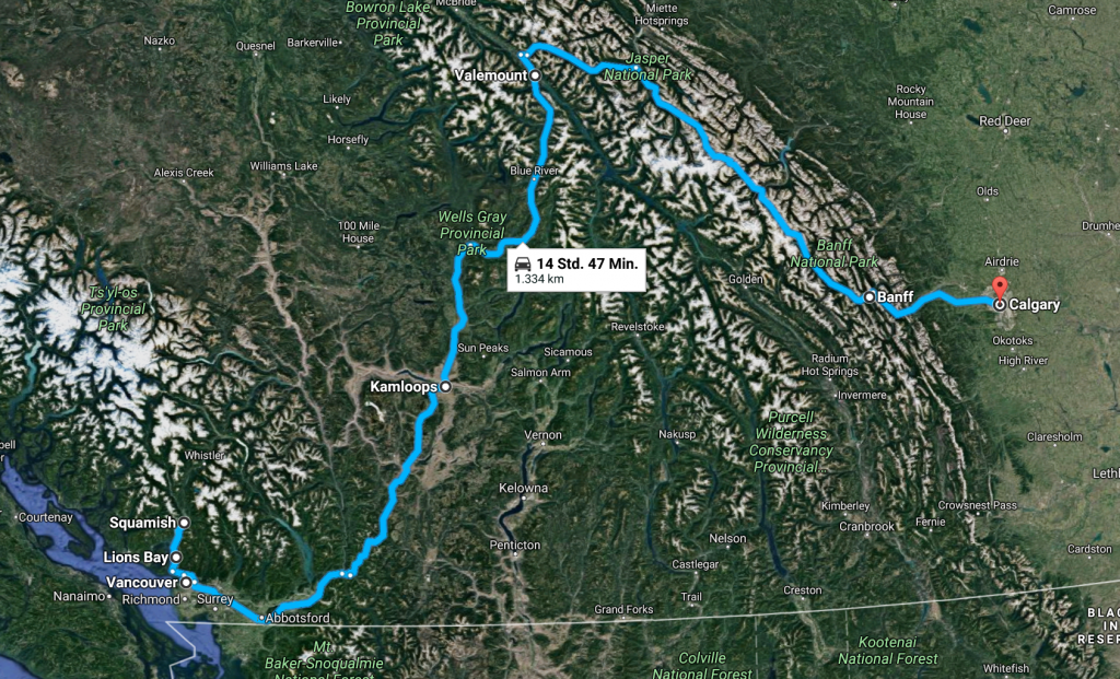 Den Roadtrip, den wir 9 Tage zuvor in Vancouver starteten, beenden wir in Calgary. Also verlassen wir den Banff Nationalpark...