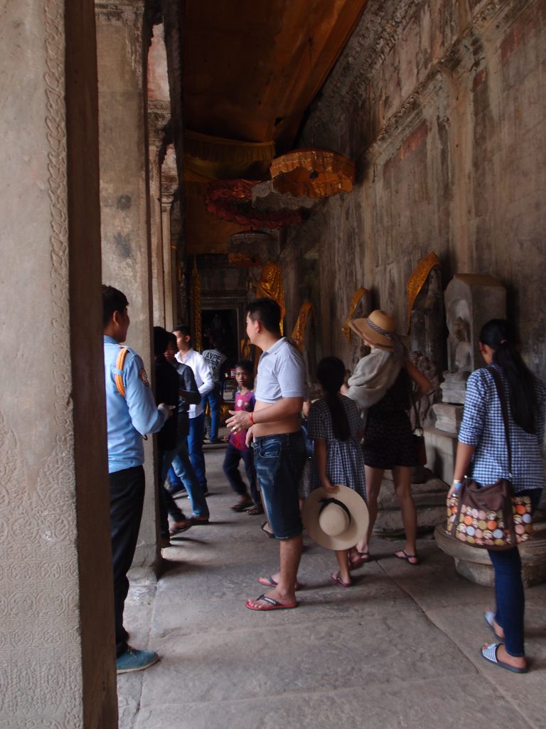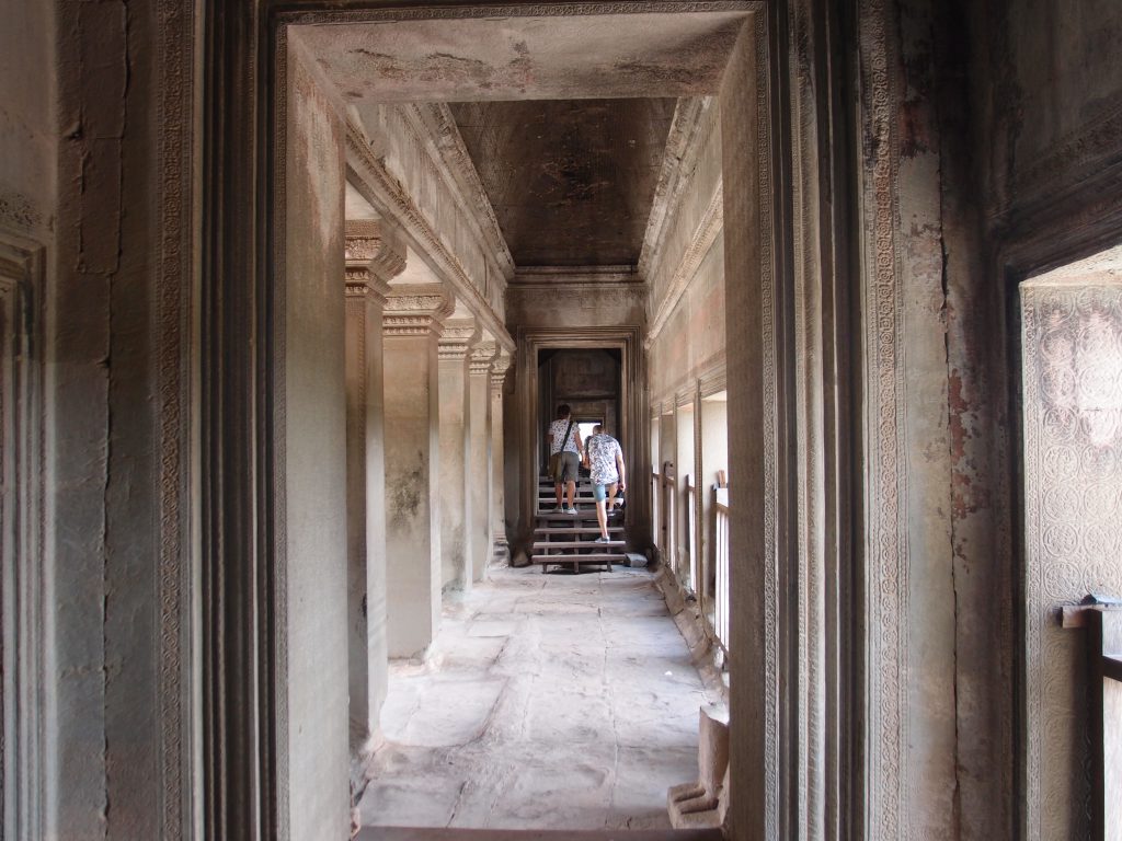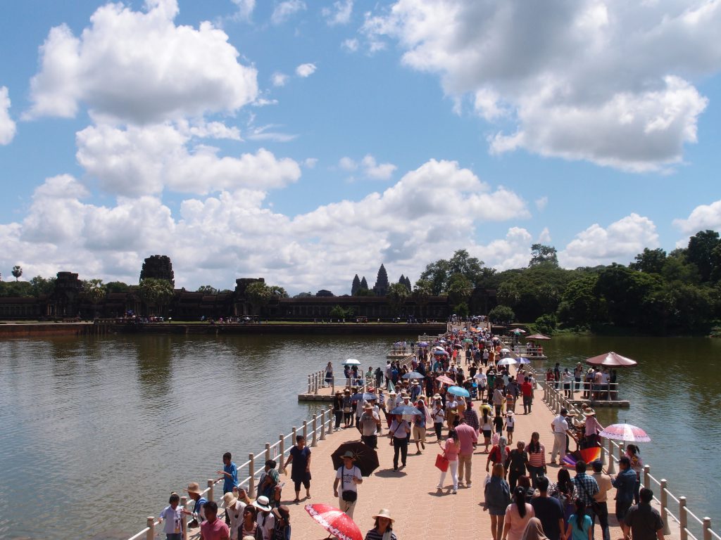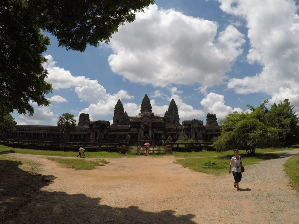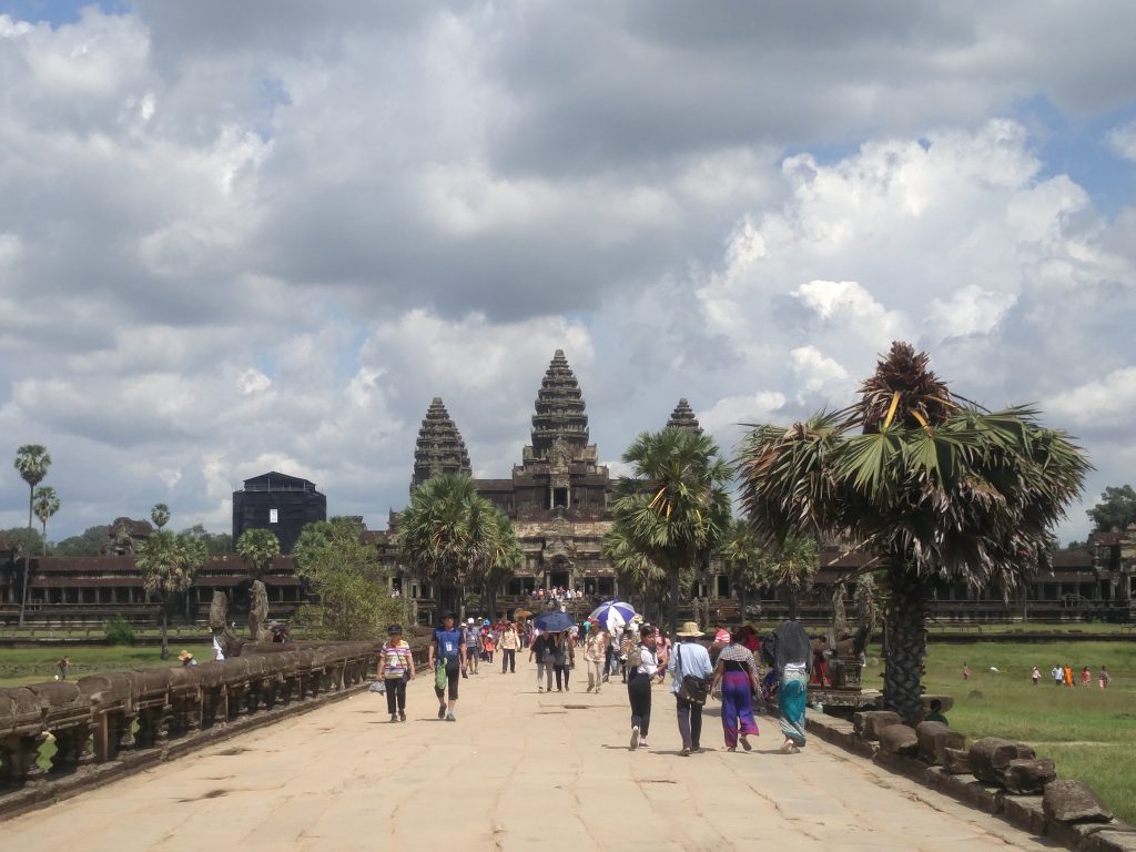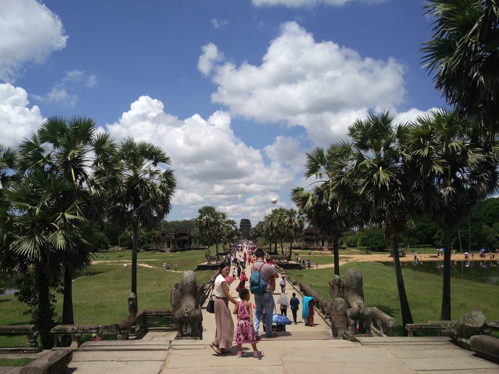 Der eigentliche Tempel wurde im 12. Jahrhundert als Mausoleum für König Suryavarman II erbaut. Wir folgten der Menschenmenge den Weg entlang, der direkt auf diese imposante Anlage zu führte.