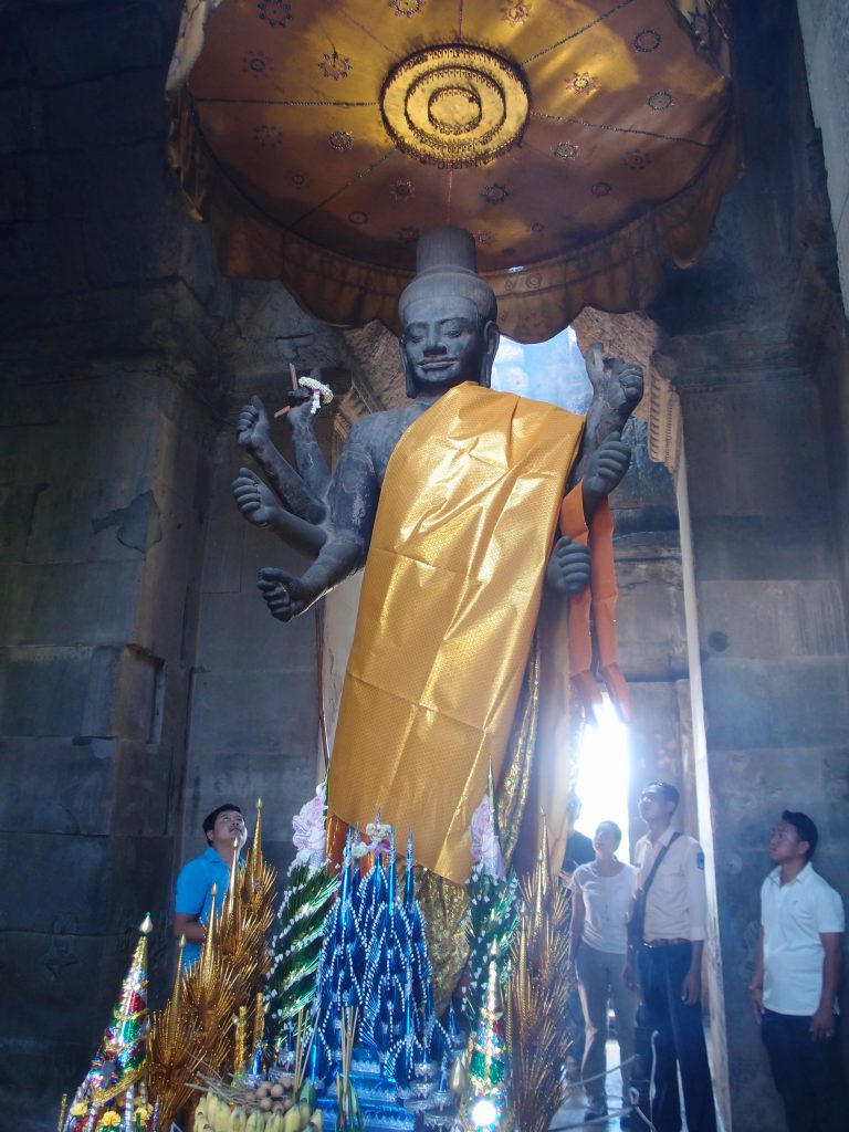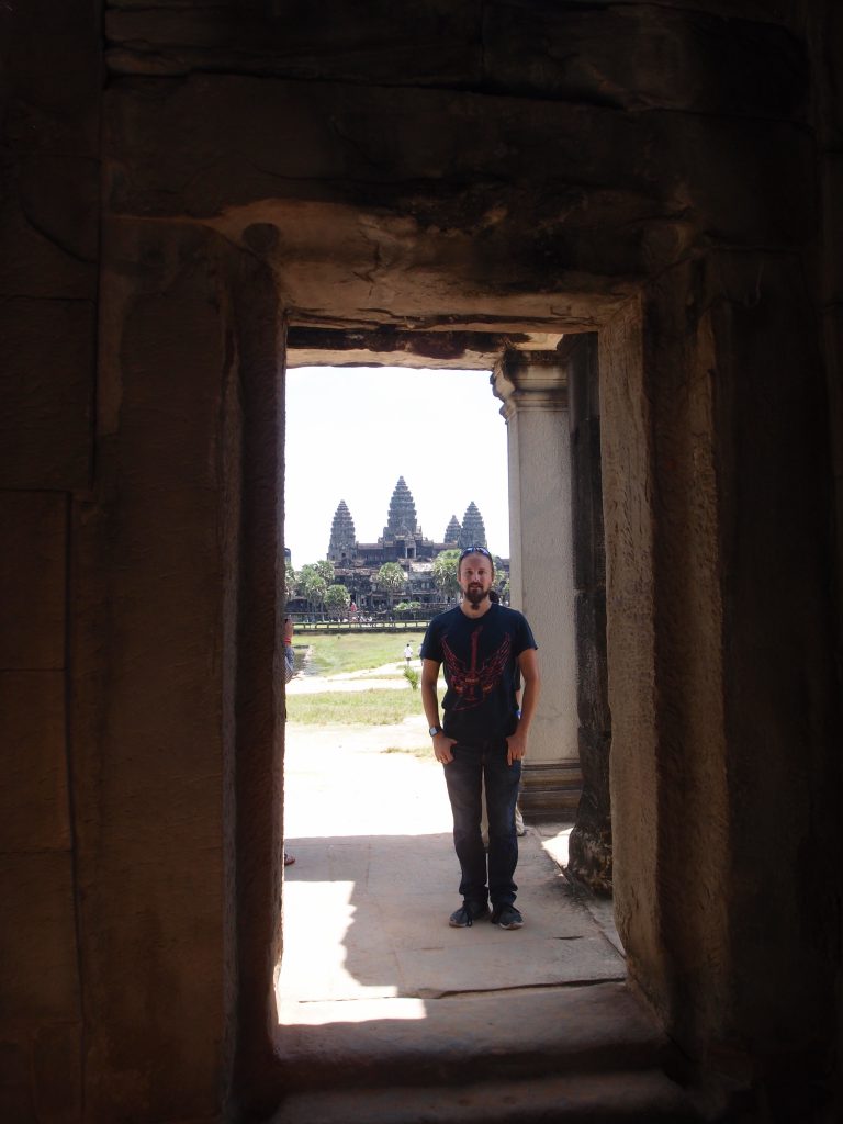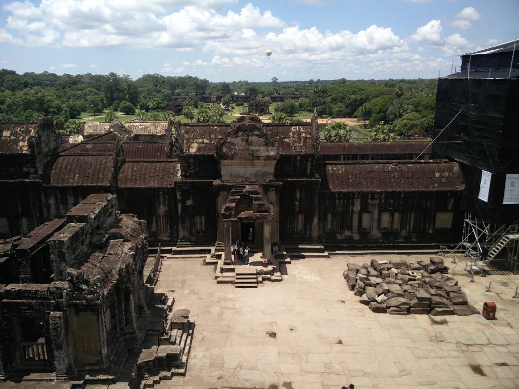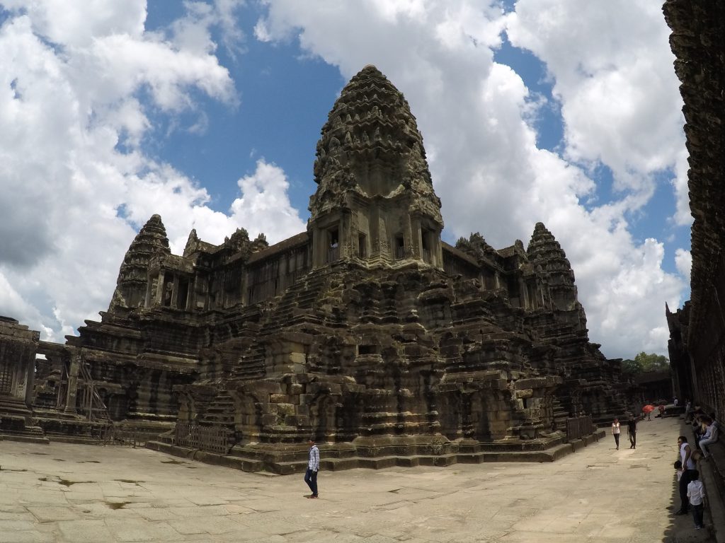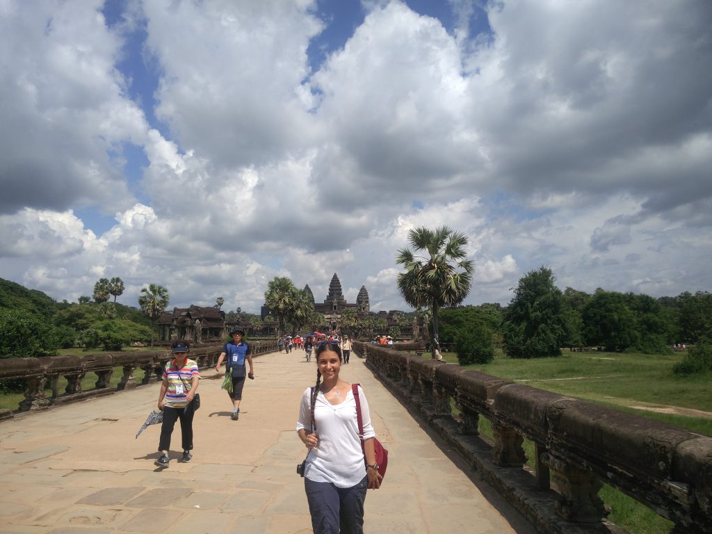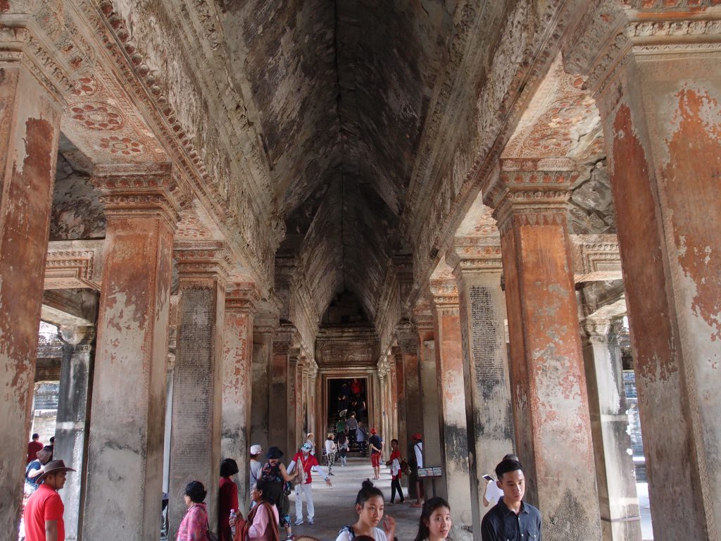 Der eigentliche Tempel wurde im 12. Jahrhundert als Mausoleum für König Suryavarman II erbaut. Wir folgten der Menschenmenge den Weg entlang, der direkt auf diese imposante Anlage zu führte.