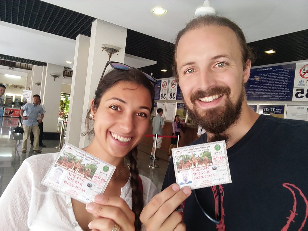 Wenn man die Angkor Anlage, in der sich der Angkor Wat Tempel befindet, besichtigen möchte, muss man zunächst einen 1-3 Tagespass kaufen. Diesen erhält man in einem ca. 5km von den Sehenswürdigkeiten entfernten Gebäude. Also fuhren wir los